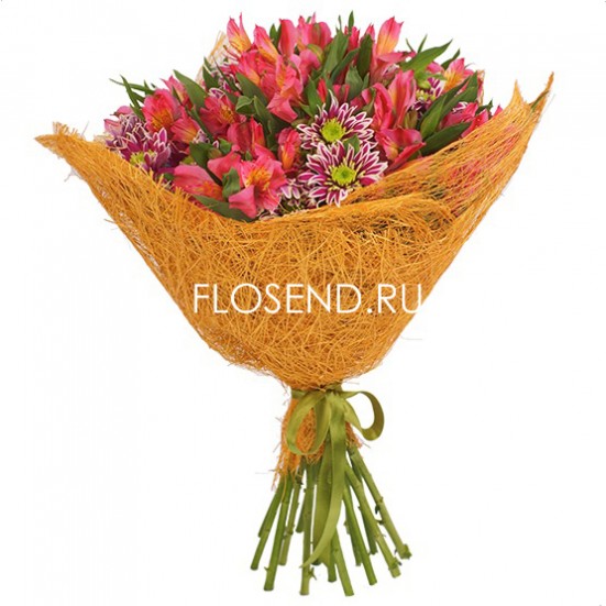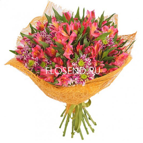 Букет из хризантем и альстромерий