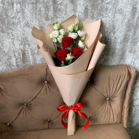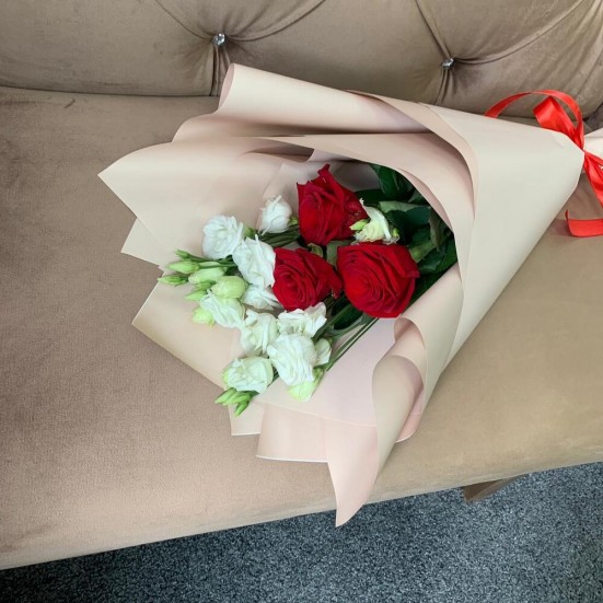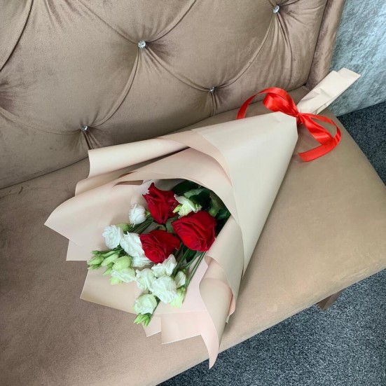 Букет «Эустомы, роза красная» в Троицке
