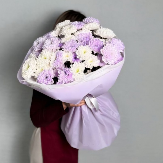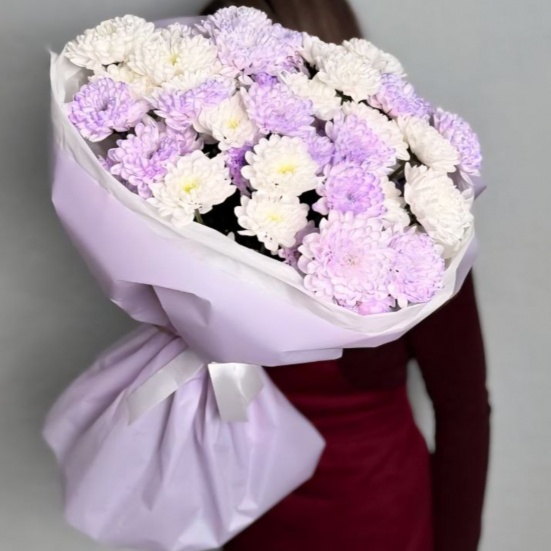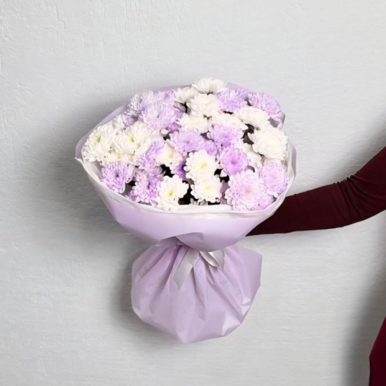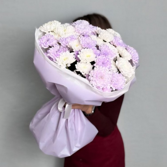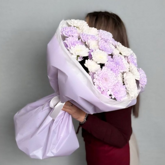 Букет из 9 фиолетовых и белых хризантем в Троицке
