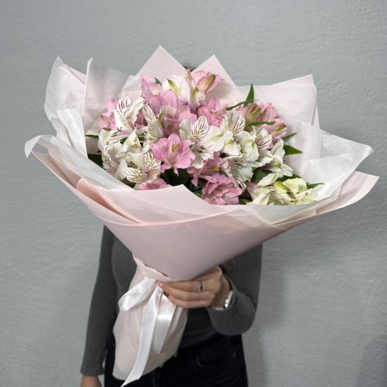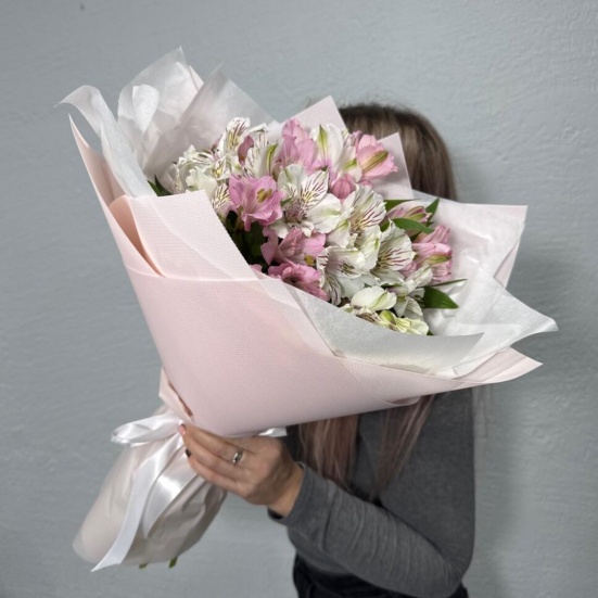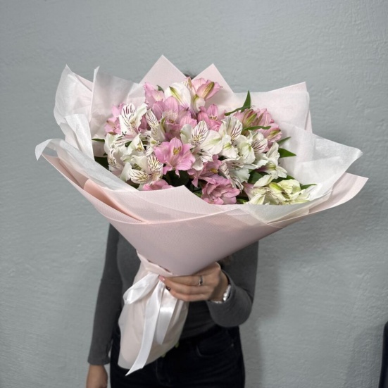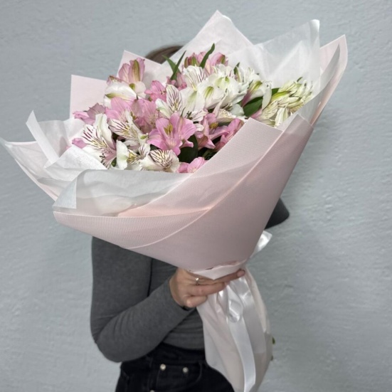 Букет из микс альстромерий белых и розовых в Троицке
