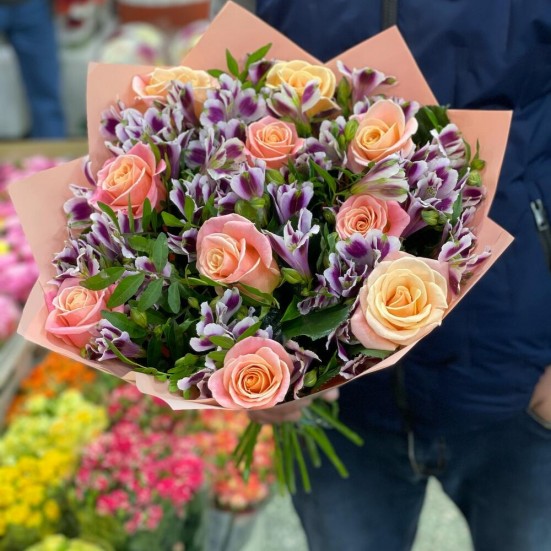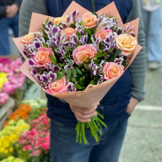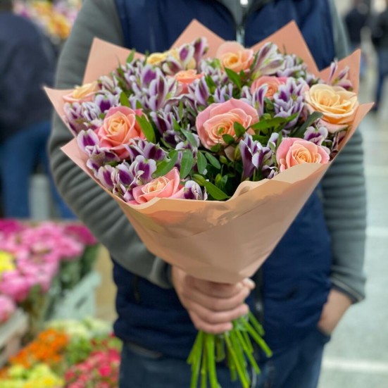Букет «Розы с альстромериями»